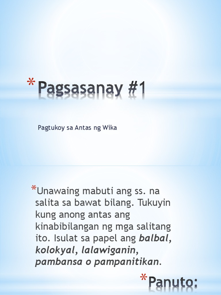 Sa araw na ito ating tatalakayin ang limang antas ng ating wika kung saang sitwasyon nararapat gamitin ang mga ito at kung ano ang kahalagahan ng. Maaaring ito ay mga salitang pinaikli mga salitang pinagsama mga salitang hiniram ngunit iniba ang baybay at. TATLONG KATEGORYA NG WIKA 1.