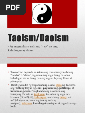 Ang Taoismo ay isang pamamaraan na naayon sa paraan ng Langitlayunin din nito na baguhin ang pamahalaan ngunit hindi ito naging matagumpay kasi hindi kasing ganda ng Taoismo ang kaisipang Confucianismo. Text is available under the CC BY-SA 40 license. Ang Papel ng Babae sa Makasaysayang Taoismo.